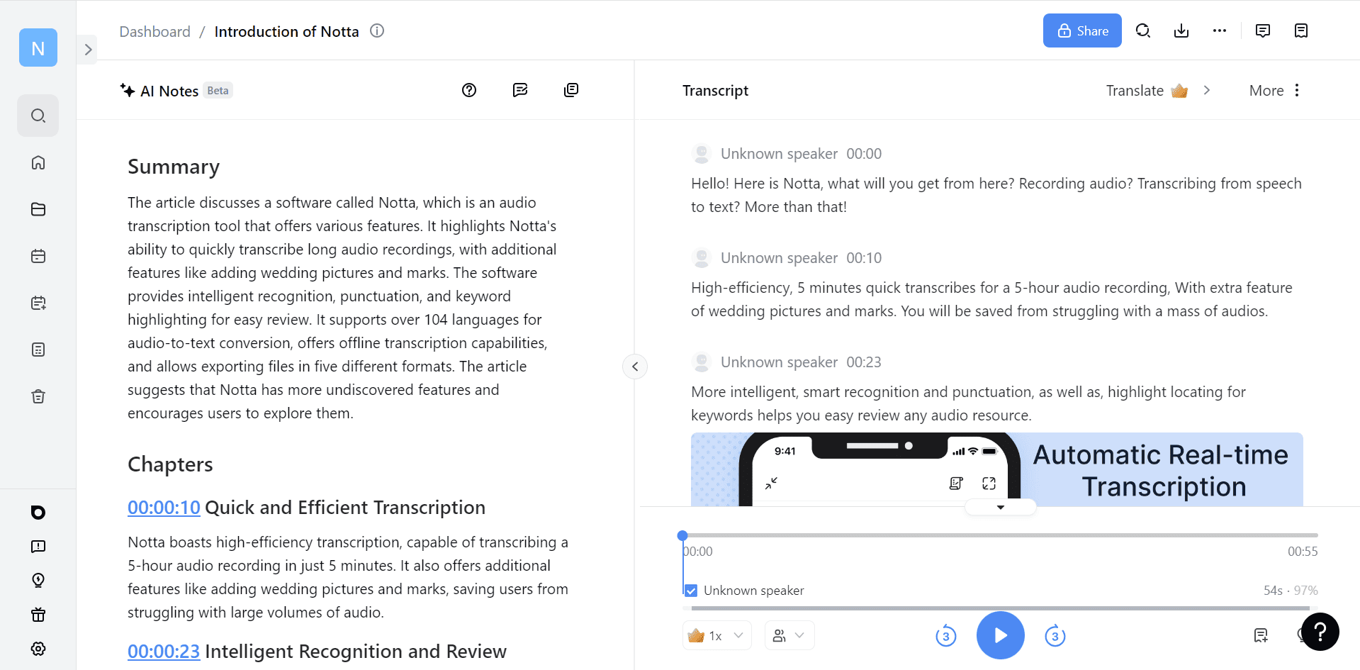 With Noota, you can capture in-person meetings using a mobile app or your computer' built-in microphone.