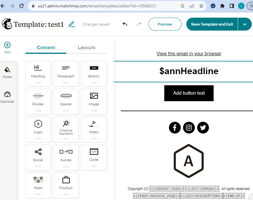 - Branding & design control: Set global styles—fonts, colors, buttons, link styles, etc.—so your campaigns maintain consistency across emails.