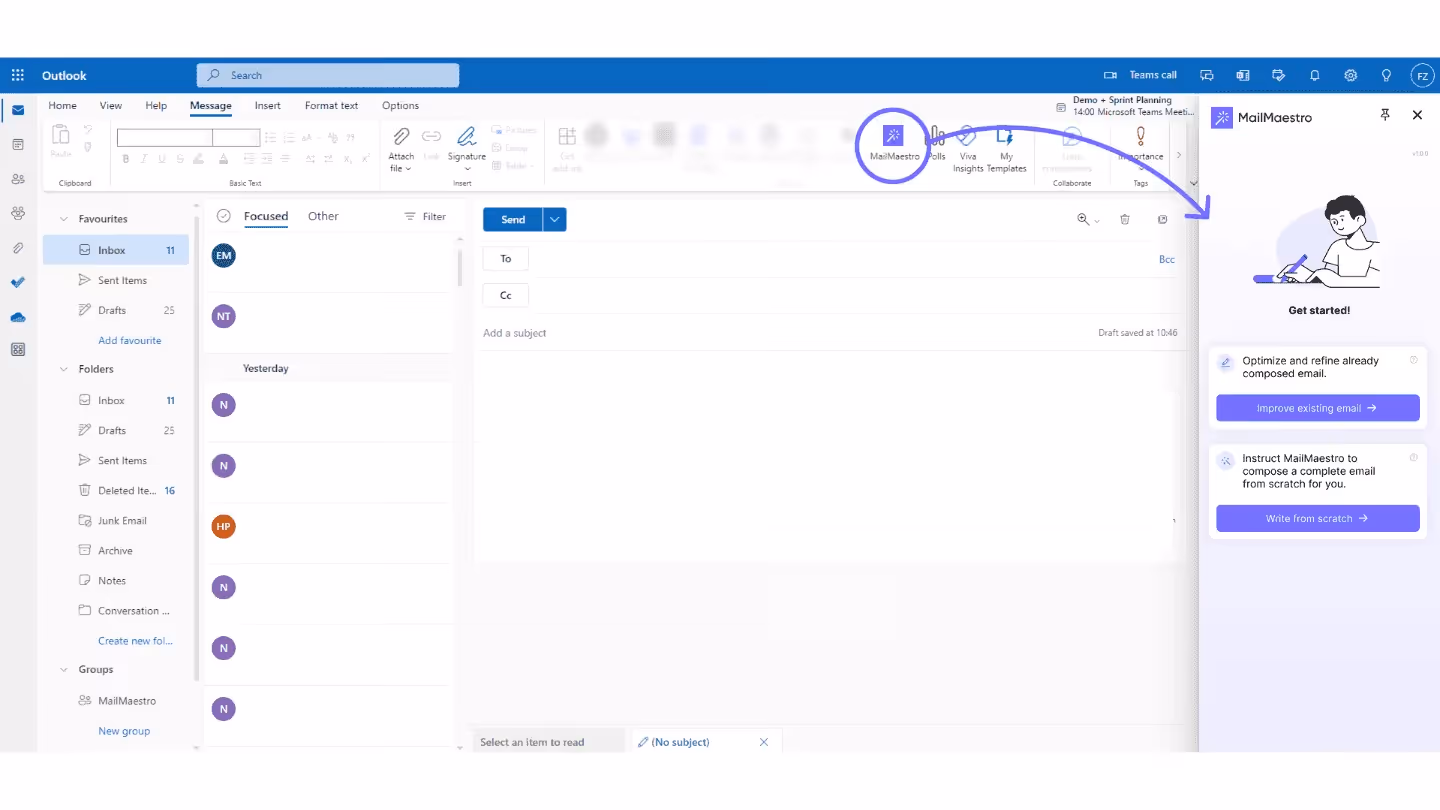 MailMaestro is a dedicated AI email writer that lives in Outlook and Gmail. It drafts, rewrites, and summarizes emails directly in your inbox. It also compresses long threads so you reply fast with context.