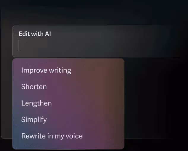 - Tone, length, and language controls. Adjust voice, shorten, expand, and translate on the fly.