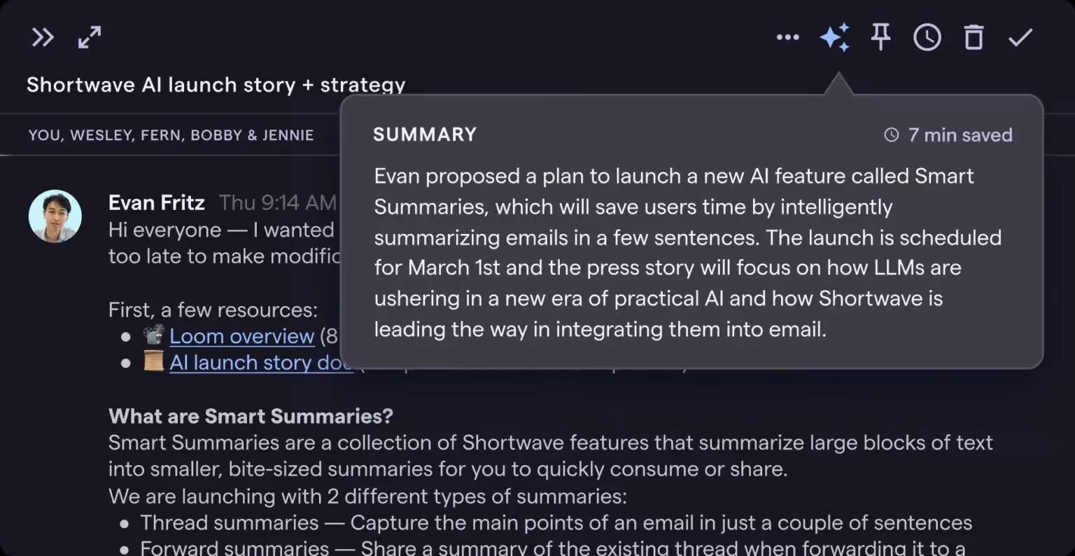 - Auto Summarize. See a one-line summary above every conversation and expand when needed. You skip rereads.