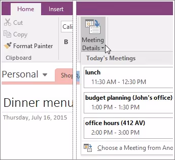 - In OneNote (desktop for Windows), go to Home → Meeting Details.