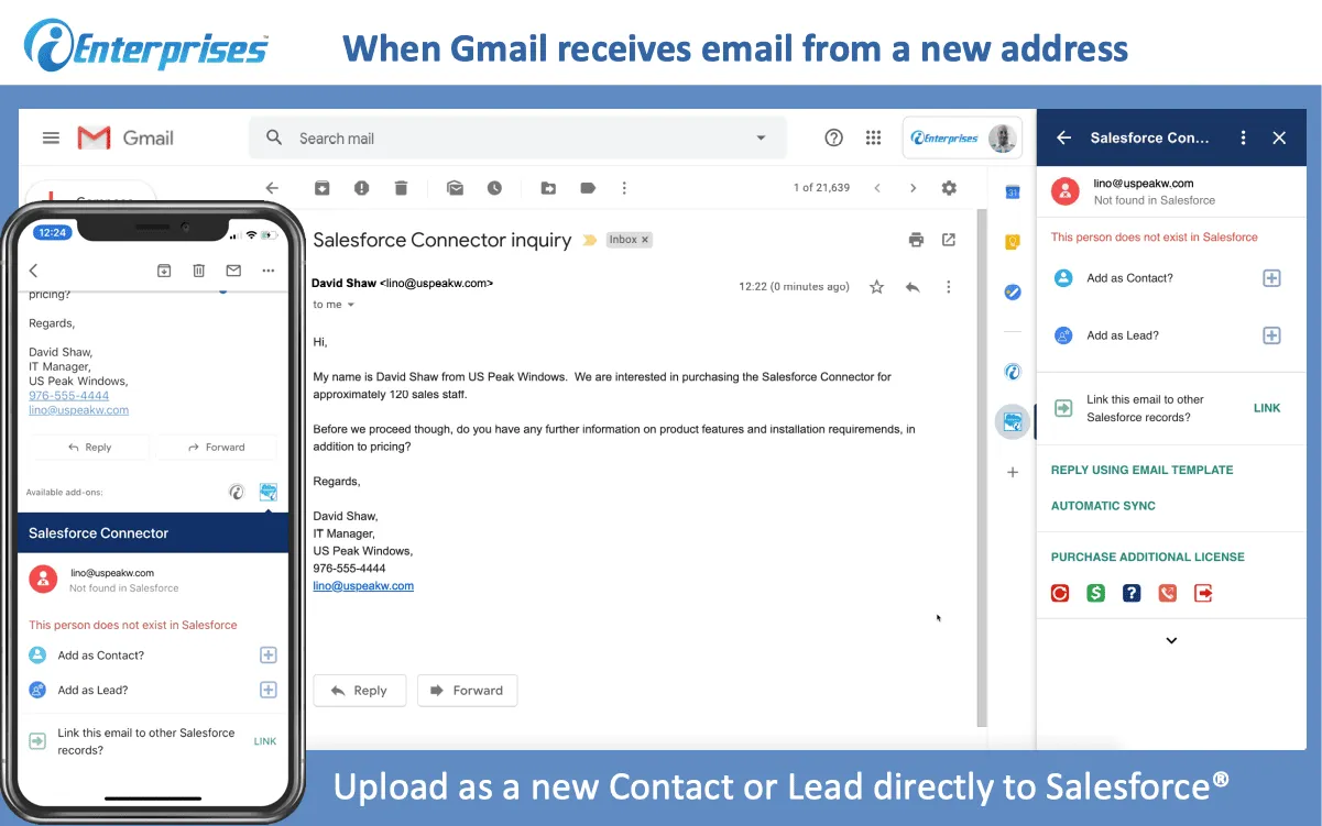 Utilisez Lightning pour Gmail/Outlook avec Einstein Activity Capture pour synchroniser les e-mails et les événements et les enregistrer dans la chronologie des activités.