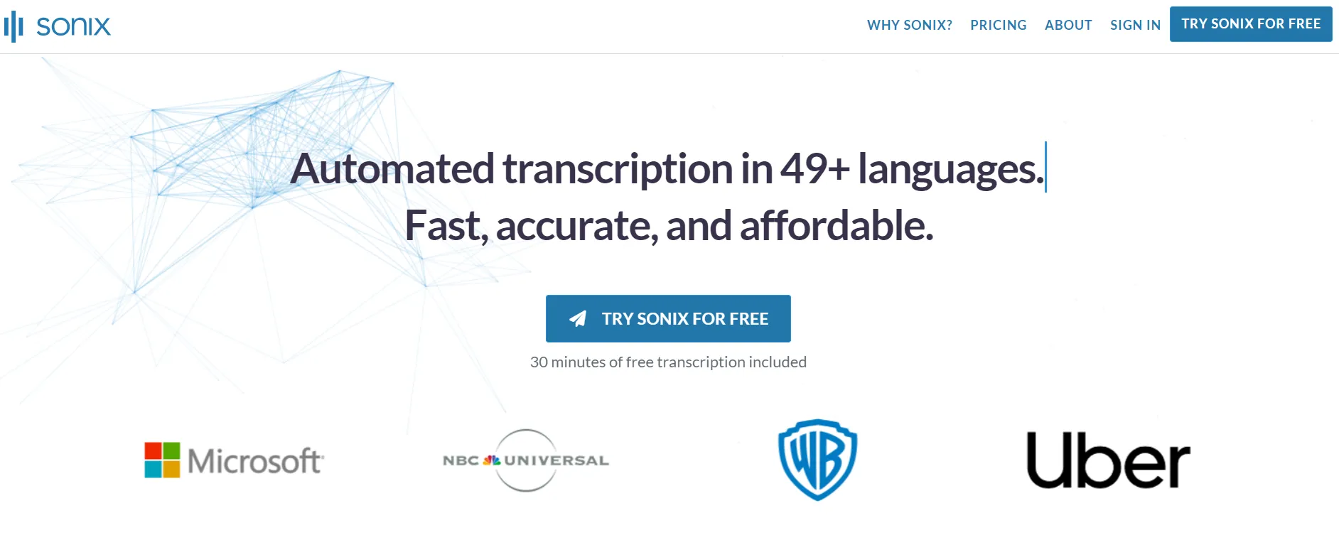 - Free trial : Sonix offre 30 minutes gratuites pour tester.
