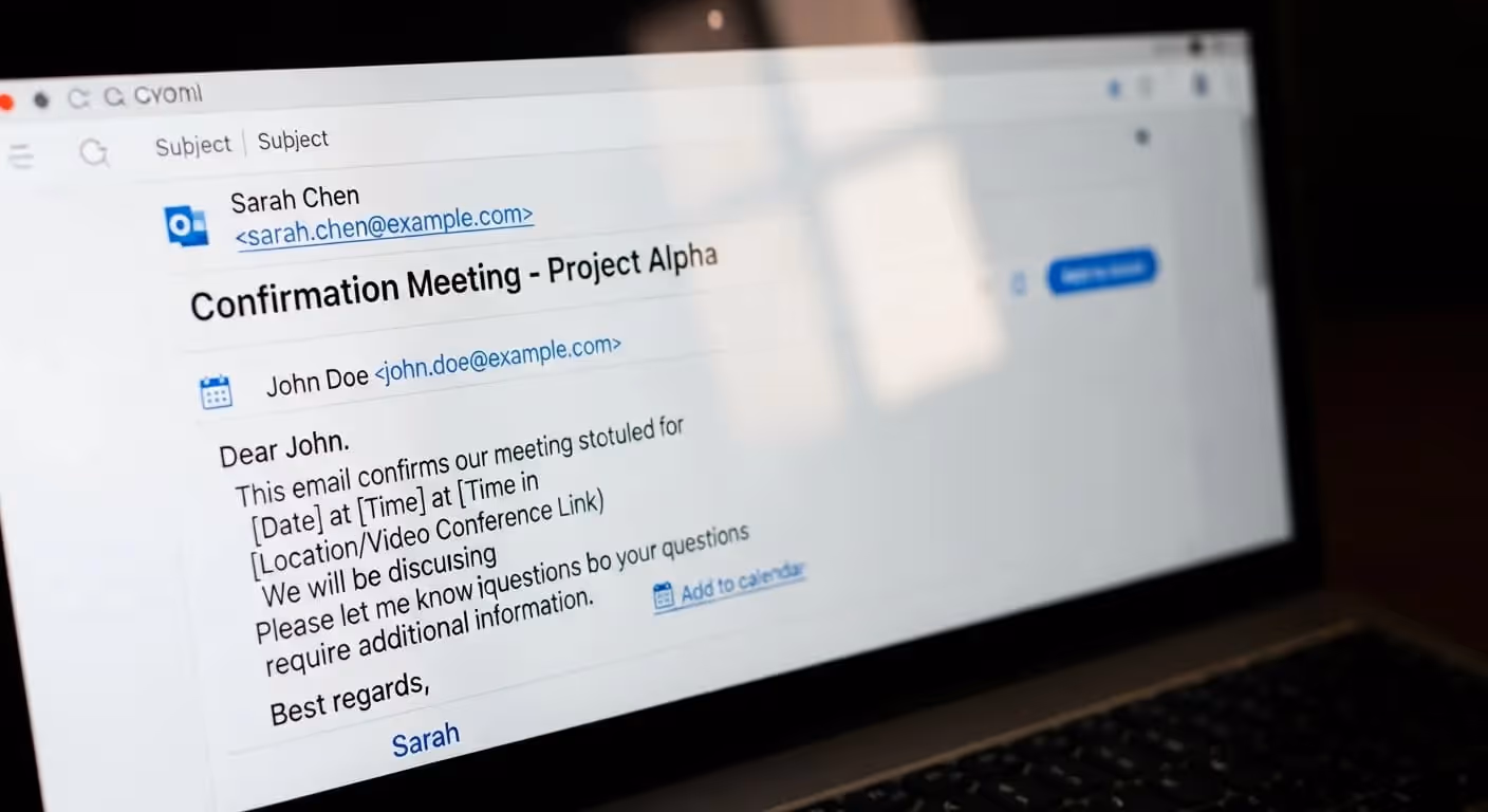 Vous venez de planifier une réunion cruciale avec un prospect, un cadre, un partenaire ou un décideur. Mais tant que vous n'avez pas envoyé un e-mail de confirmation, ce n'est pas totalement réel. Un e-mail de confirmation ne se contente pas de reformuler la réunion ; il permet de garantir l'alignement, de renforcer le professionnalisme et de réduire les risques.