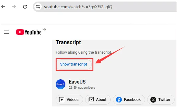 - Appuyez sur Plus bouton (souvent trois points sous la description de la vidéo) puis choisissez « Afficher la transcription » s'il apparaît.
